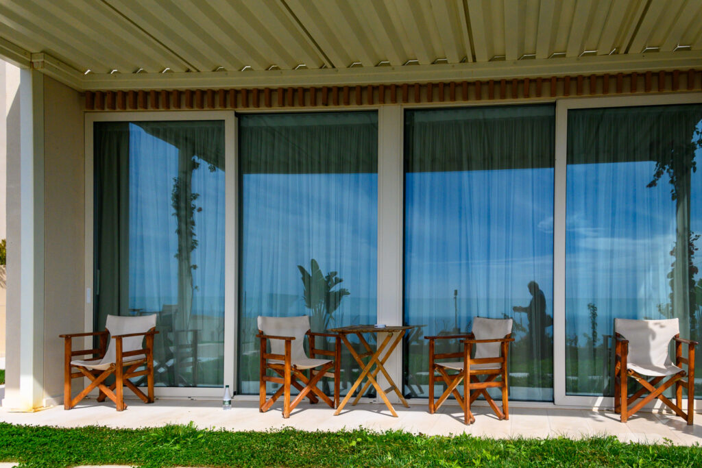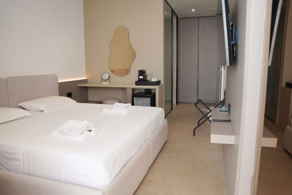 Kjo dhomë standarde, e projektuar për dy persona, ofron një ambient të ngrohtë, të rehatshëm dhe plot dritë natyrale. Çdo element i arredimit është menduar me kujdes për të sjellë ndjesinë e freskisë dhe qetësisë së bregdetit, duke përdorur materiale natyrore dhe ngjyra të buta që frymëzohen nga deti dhe gjelbërimi përreth. Ballkoni i dhomës ju fton të shijoni pamje relaksuese nga deti, ndërsa freskia e mëngjeseve dhe tingujt e natyrës krijojnë një atmosferë magjike për fillimin e ditës tuaj.