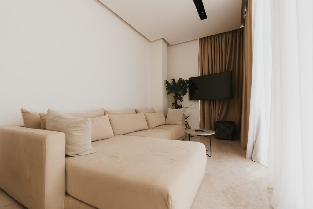 Një nga veçoritë më tërheqëse është pishina, perfekte për të shijuar ditët me diell dhe pamjen e mrekullueshme nga deti. Arkitektura bashkëkohore dhe dizajni i pastër e bëjnë këtë apartament zgjedhjen ideale për pushime pranë bregdetit me një prekje luksi dhe elegancë.
