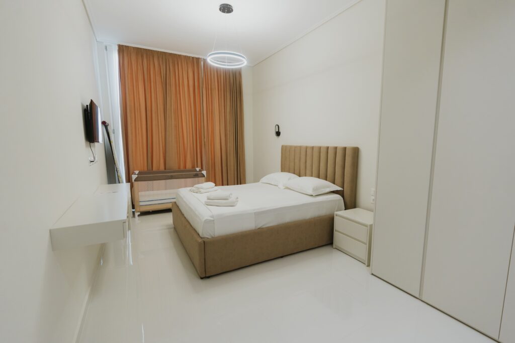 Stili i arredimit është i lehtë dhe praktik – çdo kënd është menduar për komoditet dhe përdorim të përditshëm. Hapësirat janë të pastërta dhe të organizuara në mënyrë që të ndiheni menjëherë “në vendin tuaj”.